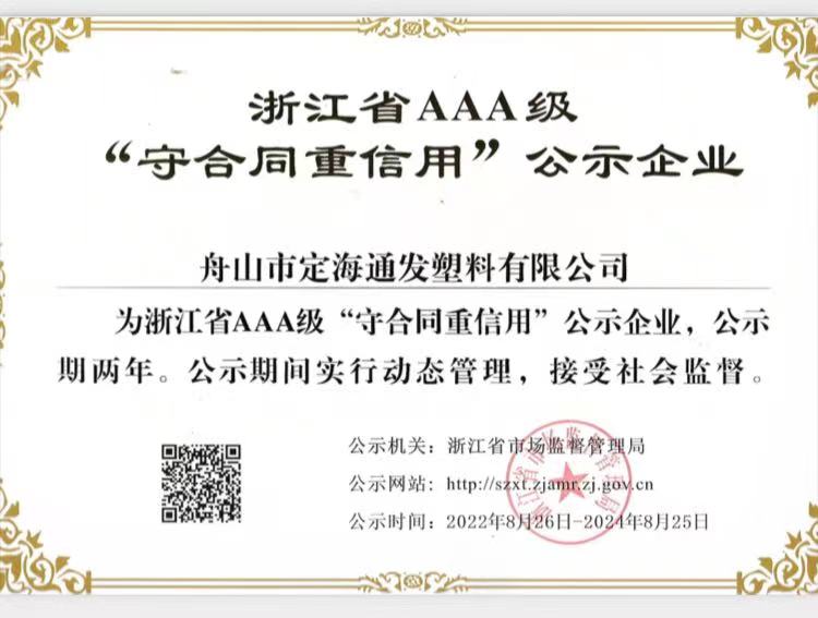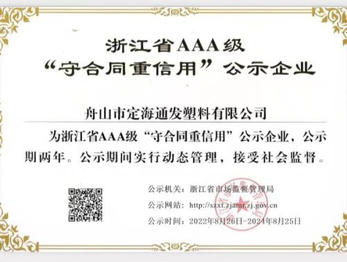 熱烈祝賀我公司再次獲得”浙江省AAA級(jí)守合同重信用公示企業(yè)“稱號(hào)。